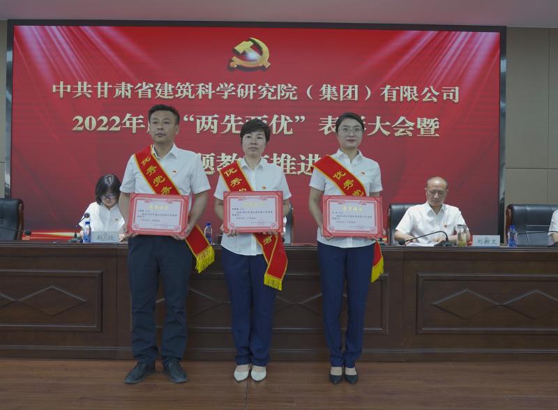 6月29日,甘肅建科院黨委召開2022年度“兩先兩優”表彰大會暨學習貫徹習近平新時代中國特色社會主義思想主題教育推進會。黨委書記、董事長張永志,紀委書記、工會主席、黨委委員趙欣及其他領導班子成員,主管級干部,全體黨員共130余人出席會議。會議由趙欣主持。