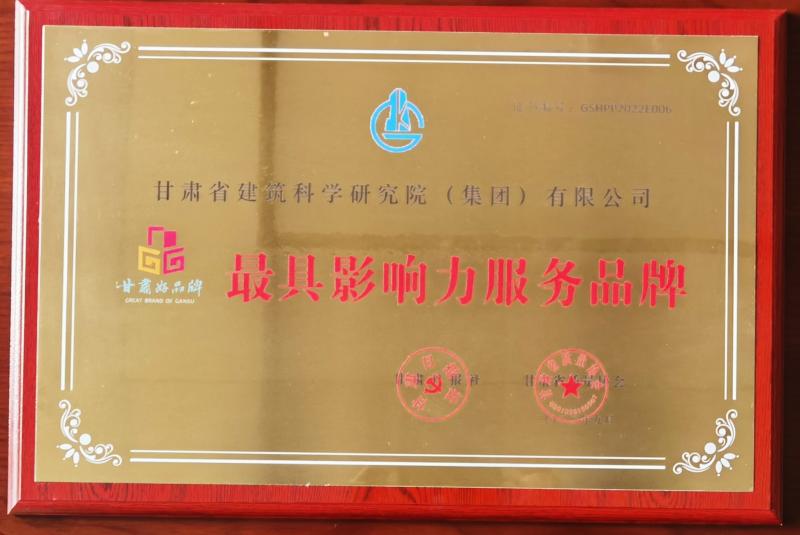 2022年,由省發(fā)展改革委、省工信廳、省商務(wù)廳、省農(nóng)業(yè)農(nóng)村廳、省市場監(jiān)督管理局、省糧食與物資儲備局等單位指導(dǎo),甘肅省質(zhì)量協(xié)會、甘肅日報社聯(lián)合主辦的第三屆“甘肅好品牌”推選活動中,甘肅建科院榮獲“最具影響力服務(wù)品牌”獎牌,黨委副書記、總經(jīng)理史智偉榮獲“最具影響力品牌人物”獎杯。